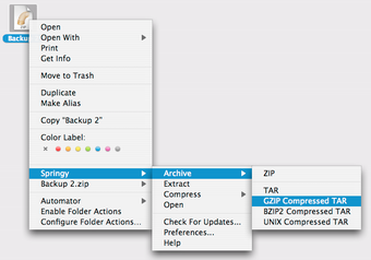 Decimos potente porque su uso es tremendamente sencillo, todo se puede llevar a cabo vía acciones de arrastre o por medio del menú contextual del Finder. Una solución sencilla y eficaz para archivar ficheros.